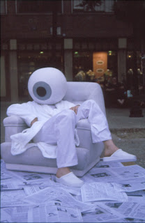 La vinculación entre Objeto-copa-cabeza y espacio/planta primera queda patente. El pasillo más alto del edificio es donde se haya esta copa metamorfoseada en monitor de televisor, que no representa la “realidad”, presenta la posibilidad; no se trata de una valoración, sino una declaración de afinidades, muy cercanas a las declaraciones de artistas como Gary Hill: